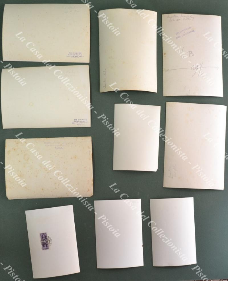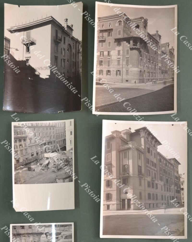 ROMA. Insieme di 10 foto originali: quattro di cm 17x23 (anni '30/'40) mostrano edifici in via Arno, quartiere Trionfale (2) e quartiere Celio. Sei di cm 17x23 e di cm 12x18, mostrano edifici e cantieri senza indicazioni anni '50/'60. Buona conservazione. (Rif.F1919)