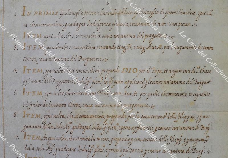 Anno 1607. INDULGENZE E GRAZIE concesse da Nostro Signore Paolo Quinto alle Corone, Rosarii, Medaglie, Croci, Imagini, Quadri, Agnus Dei benedetti ad instanzia dell'ecc.mo sig.r Don Francisco de Castro, alli 30 Maggio 1607.