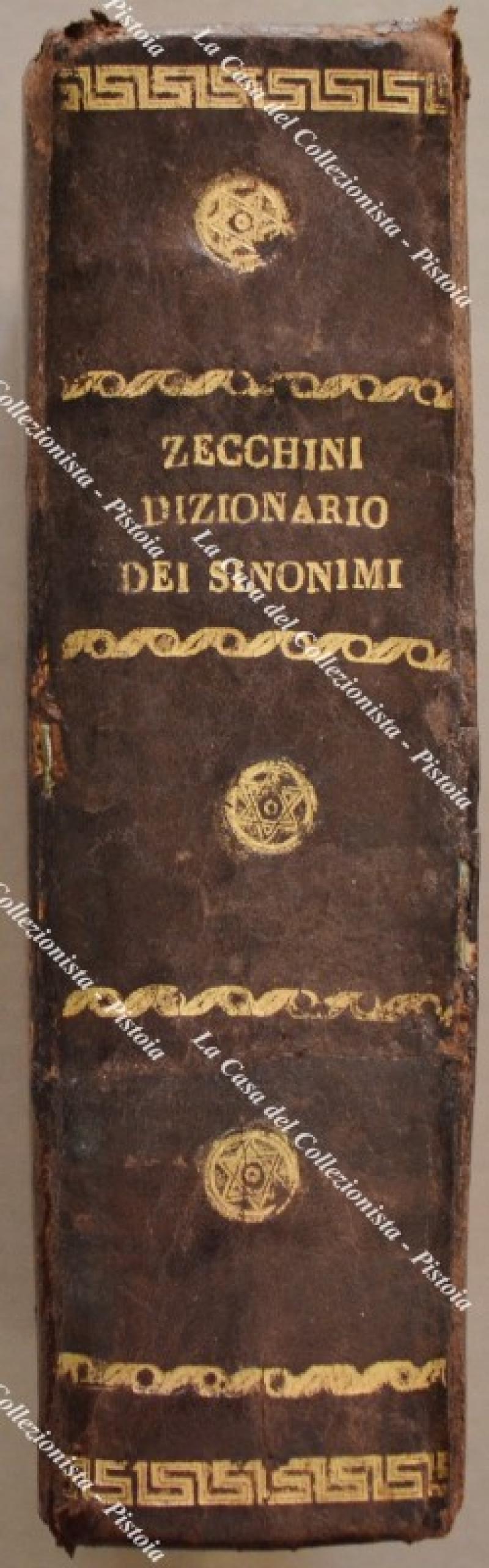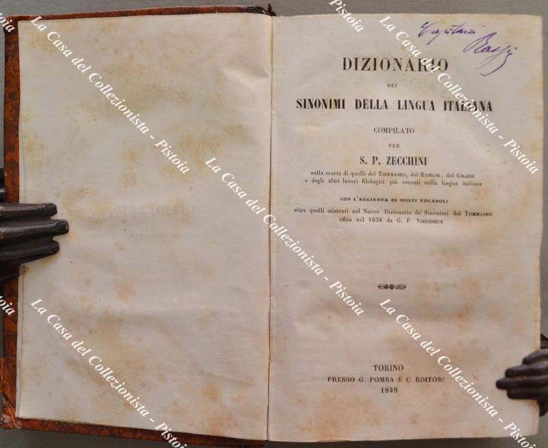 (Lingua italiana) ZECCHINI PIETRO STEFANO. DIZIONARIO dei SINONIMI DELLA LINGUA ITALIANA ... CON L’AGGIUNTA DI MOLTI VOCABOLI oltre quelli esistenti nel Nuovo Dizionario de’ Sinonimi del TOMMASEO edito nel 1838 da G.P.Vieusseux. Torino, Pomba, 1848.