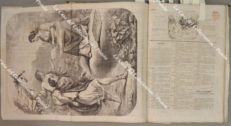 (Periodico satirico ill. ‘800) IL FISCHIETTO. Annata 1858. Completa. Rivista satirica fondata a Torino nel 1848 dal disegnatore Lorenzo Pedrone (Icilio) e dal tipografo Giuseppe Cassone.