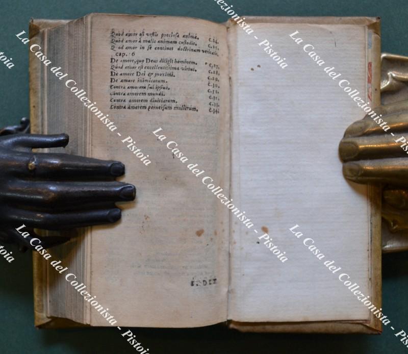 (Religione - elzeviriana - edizione 1669) AGOSTINO AURELIO (Santo). DIVI AURELII AUGUSTINI HIPPON. EPISCOPI MEDITATIONES, Soliloquia et Manuale ..... Lugduni, Sumpt. Antonij Iullieron, 1669. Cm 5x10.8, legatura coeva in piena pergamena. Pp. 374 + pp. 10 non numerate di indice (mancano le ultime 2); frontespizio inciso. Ottima conservazione. (Rif.F7245)