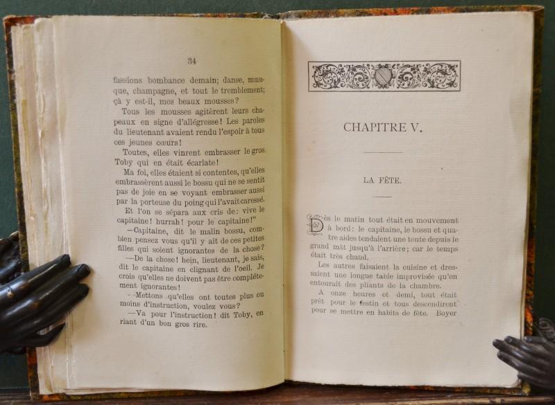 (Letteratura erotica '800) MAEL PIERRE. ROBINSON ET ROBINSONNES. Exploits Amoureux d'une troupe de Naufragès. Saratoga, Imprimerie des Mormons, 1892 (ma Parigi, Isidore Lisieux). Cm 11x17,5 (in barbe), vecchia legatura in cartone decorato con tassello di carta al dorso. Pp. 72. Ottima conservazione. Rara prima edizione. (Rif.F7656-77)