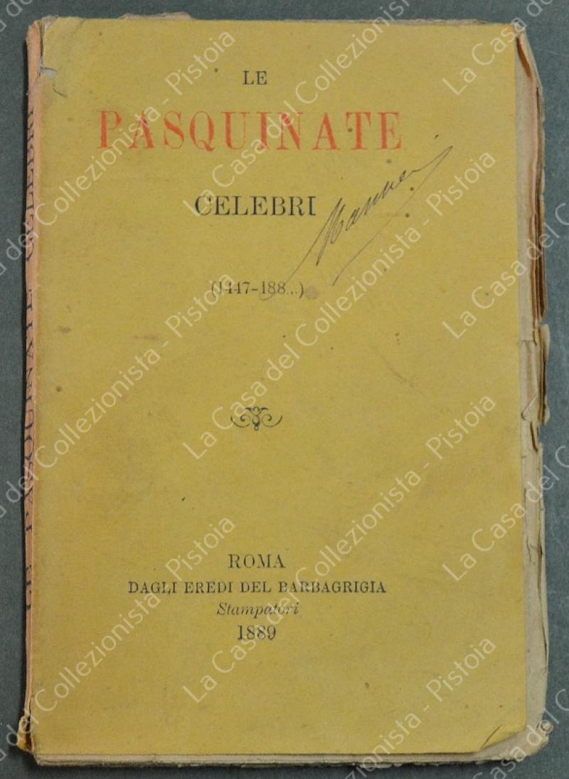 (Satira). LE PASQUINATE CELEBRI (1447 - 188...). Roma, Eredi del Barbagrigia, 1889. Cm 8,5x13, brossura originale, pagine 121. Lievi usure. (Rif.F7592)