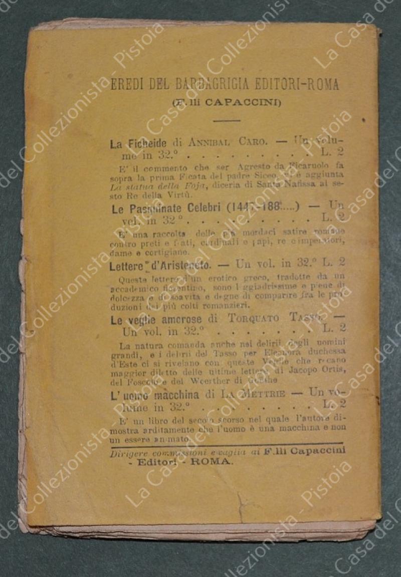 (Satira) SONETTI POLITICI E SATIRICI IN DIALETTO ROMANESCO. Attribuiti a G.G. Belli. Roma, Eredi del Barbagrigia, 1889. Cm 8,5x13, brossura originale, pagine 78. Minime usure. (Rif.F7593)