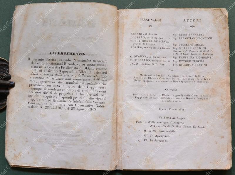 (Teatro) ERNANI. Dramma lirico... Giuseppe Verdi. Milano, 1845