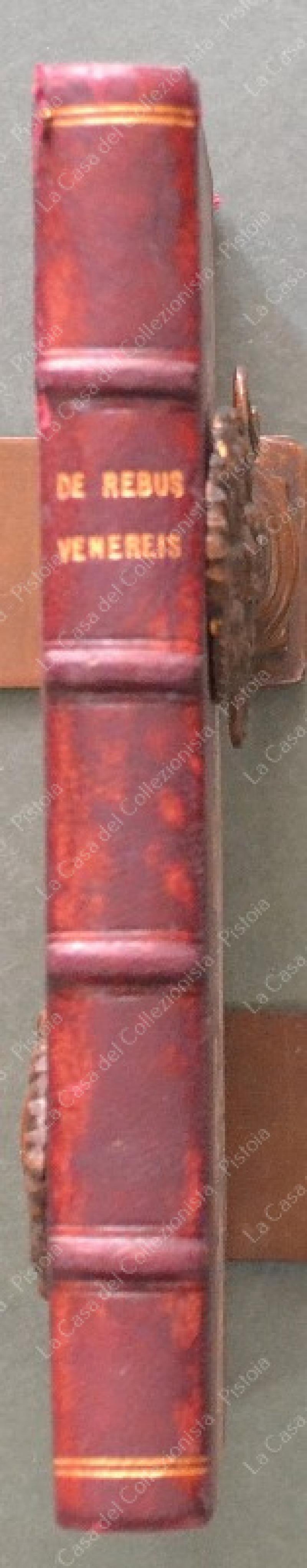 Teologia morale - sesso. CRAISSON D.. DE REBUS VENEREIS AD USUM CONFESSARIORUM. Editio nova. Parigi, Poussielgue Fratres, 1888. Cm 12x18, mezza pelle coeva con punte e piatti in carta decorata. Pagine VI + 244. In barbe. L'opera destinata ai confessori cattolici, esplora in modo approfondito la moralità sessuale, offrendo linee guida riguardo ai peccati e comportamenti legati alla sfera "venerea". Volume solido e ben conservato eccetto piccole fessurazioni al dorso e lievi danni restaurati al frontespizio. (Rif.F8173)