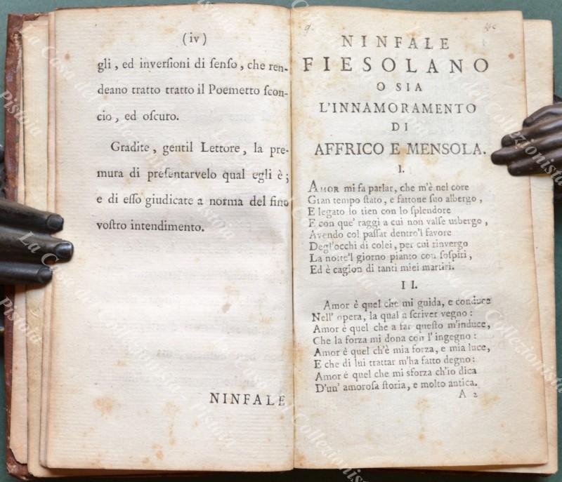 NINFALE FIESOLANO nel quale si contiene l’innamoramento di FRICO E MENSOLA. Poemetto in ottava rima di GIOANNI BOCCACCIO ridotto a vera lezione.