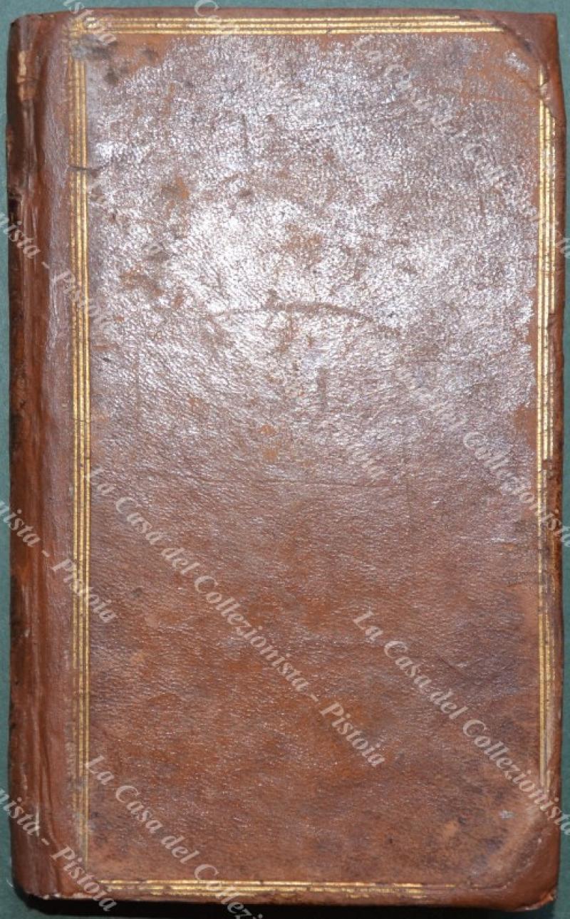 (Poesia) BOCCACCIO GIOVANNI. NINFALE FIESOLANO nel quale si contiene l’innamoramento di FRICO E MENSOLA. Poemetto in ottava rima di GIOANNI BOCCACCIO ridotto a vera lezione. Londra, Molini, 1778. Cm 8,3x13,6, legatura coeva in piena pelle (dorso e piatti restaurati in modo professionale con alcune mancanze reintegrate). P. IV + 160, frontespizio inciso da Delaunay su disegno di Mariller. Un alone al margine del frontespizio e lievi bruniture. Tagli spruzzati, volume solido. (Rif.F0512-475/74)