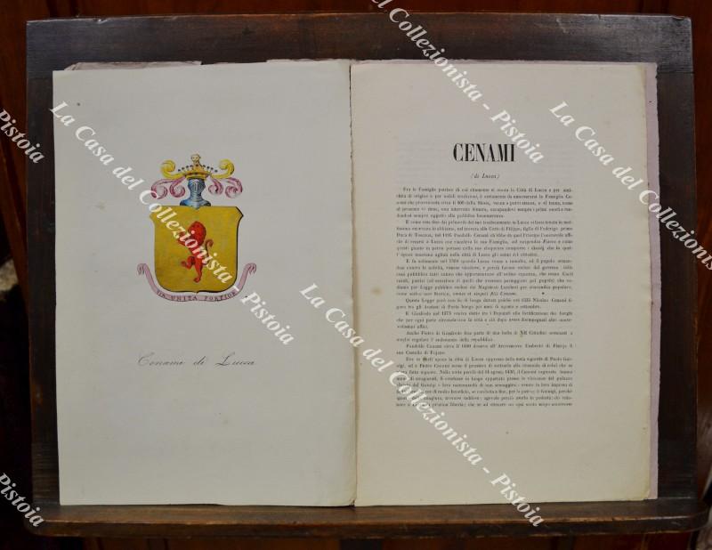 (Araldica) Famiglia CENAMI di Lucca. Fascicolo completo (tavola + testo). Firenze, Ed. Ulisse Diligenti, 1862/1864.