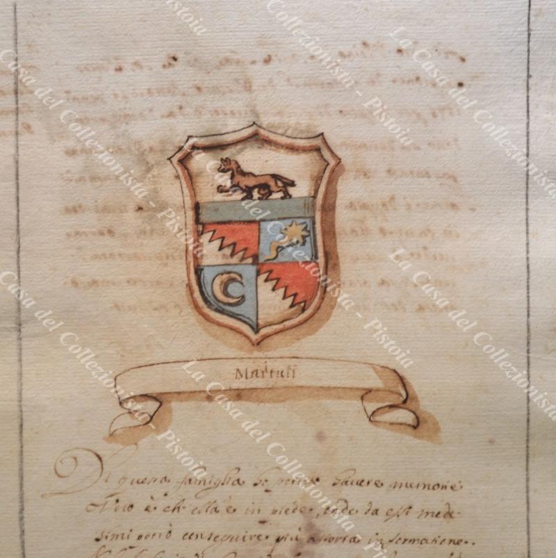 ARALDICA, Roma. FAMIGLIA MARTULI. Manoscritto seicentesco con stemma all'acquarello.