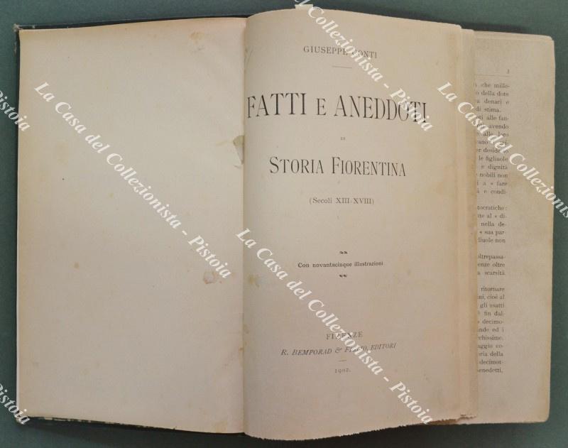(Toscana, Firenze). CONTI GIUSEPPE. FATTI E ANEDDOTI DI STORIA FIORENTINA (Secoli XIII - XVIII). Con 95 illustrazioni. Firenze, Bemporad, 1902. Cm 15x22, tela editoriale, pp. 566. Qualche usura. (Rif.7792-77)
