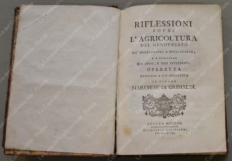 (Liguria, Genova - Agricoltura). GNECCO GIROLAMO. RIFLESSIONI SOPRA L'AGRICOLTURA DEL GENOVESATO... Genova, 1770