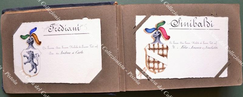 LUCCA - ARALDICA. Collezione di 53 cartoncini formato cartolina di cm 14x9. Su ciascuno uno stemma finemente realizzato a tempera e notizie biografiche. Quasi tutti firmati provinciali (alcuni datati 1904).