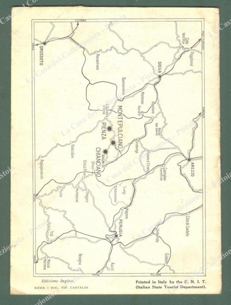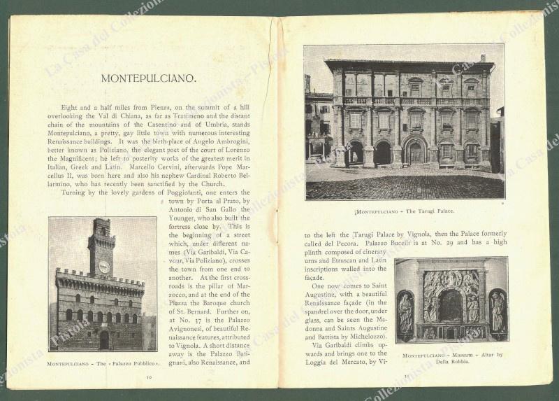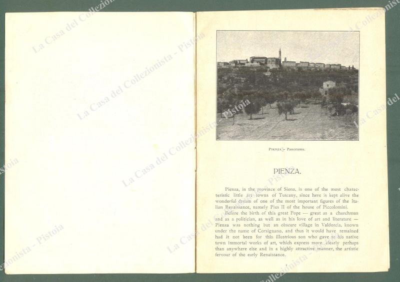 Toscana. PIENZA, SIENA. Opuscolo di pagine 16, con illustrazioni fotografiche nel testo. Formato cm 12x16,5, anni trenta, in inglese. (Rif.D6438)