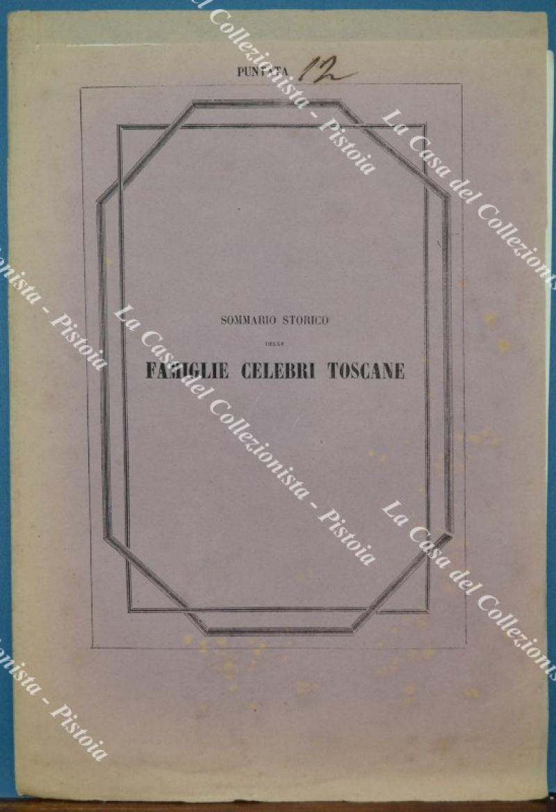 (Araldica - Toscana) Famiglia ACCOLTI d'AREZZO. Fascicolo completo di cm 19,5x28,5: brossura editoriale contenente tavola colorata all'epoca a mano e 3 pagine di testo relative alla storia della famiglia. Il fascicolo è tratto dall'opera SOMMARIO STORICO DELLE FAMIGLIE CELEBRI TOSCANE di Tiribilli Giuliani - Luigi Passerini edita tra il 1862 ed il 1865 a Firenze da Alessandro Diligenti. Buona conservazione. (Rif.F7581)