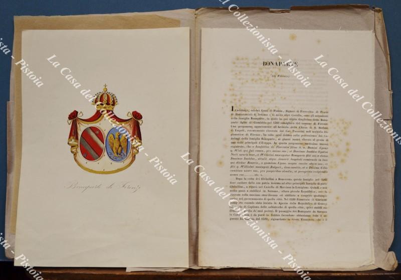 (Araldica) Famiglia BONAPARTE di FIRENZE. Fascicolo completo (tavola + testo). Firenze, Ed. Ulisse Diligenti, 1862/1865.
