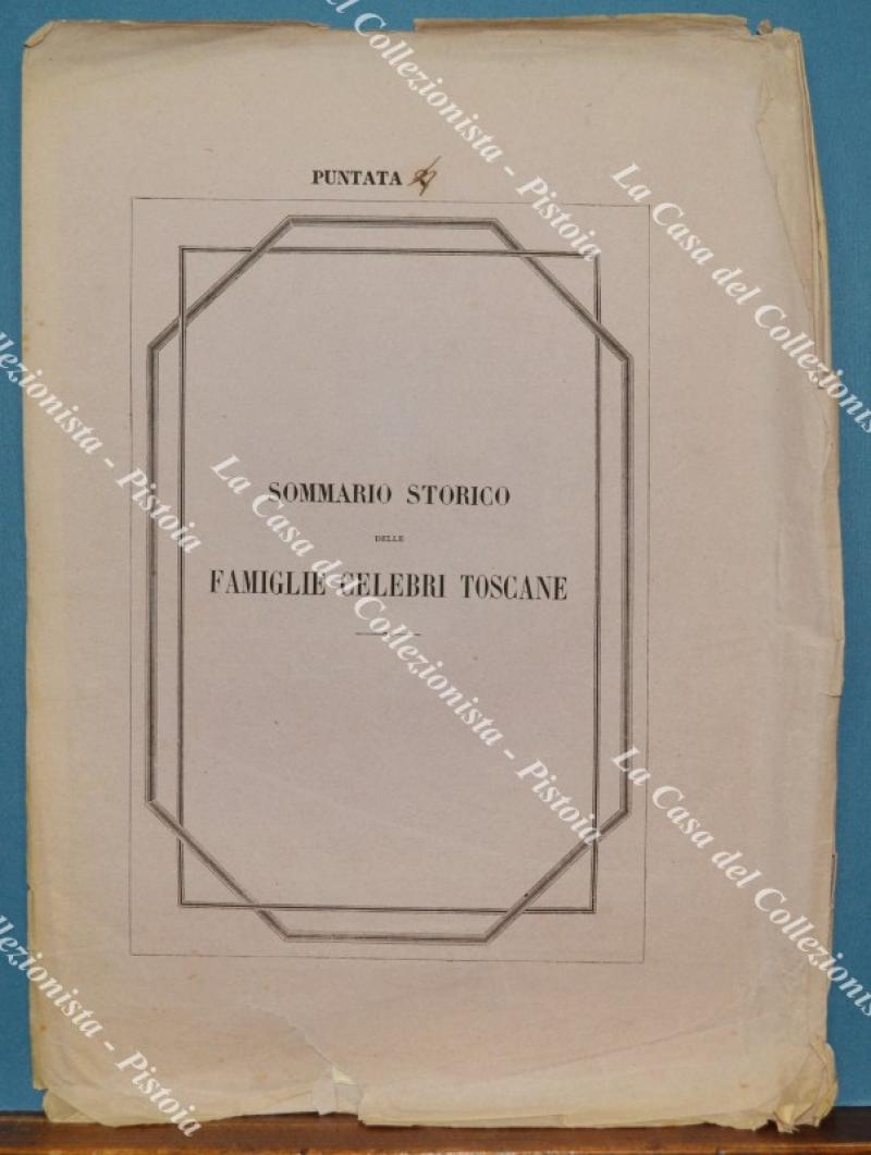 (Araldica - Toscana) Famiglia BONAPARTE di FIRENZE. Fascicolo completo di cm 19,5x28,5: brossura editoriale contenente tavola colorata all'epoca a mano e 4 pagine di testo relative alla storia della famiglia. Il fascicolo è tratto dall'opera SOMMARIO STORICO DELLE FAMIGLIE CELEBRI TOSCANE di Tiribilli Giuliani - Luigi Passerini edita tra il 1862 ed il 1865 a Firenze da Alessandro Diligenti. Buona conservazione, piccoli difetti alla brossura editoriale. (Rif.F7574)