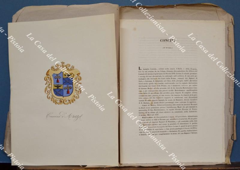(Araldica) Famiglia CONCINI d'AREZZO. Fascicolo completo (tavola + testo). Firenze, Ed. Ulisse Diligenti, 1862/1865.