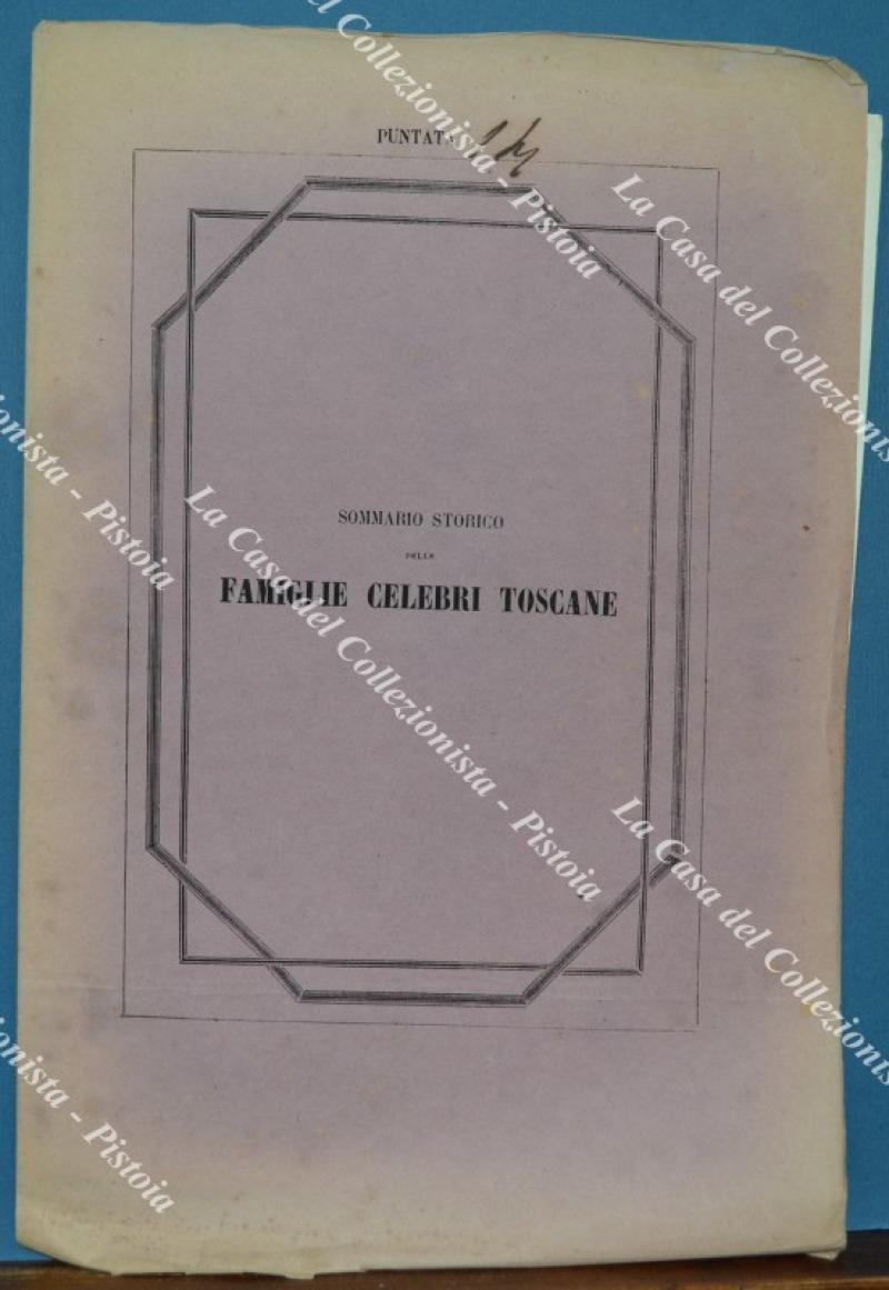 (Araldica - Toscana) Famiglia NICCOLINI di FIRENZE. Fascicolo completo di cm 19,5x28,5: brossura editoriale contenente tavola colorata all'epoca a mano e 4 pagine di testo relative alla storia della famiglia. Il fascicolo è tratto dall'opera SOMMARIO STORICO DELLE FAMIGLIE CELEBRI TOSCANE di Tiribilli Giuliani - Luigi Passerini edita tra il 1862 ed il 1865 a Firenze da Alessandro Diligenti. Buona conservazione. (Rif.F7572)