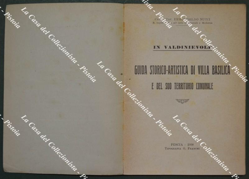 (Pistoia - Valdinievole) NUCCI Ermenegildo. IN VALDINIEVOLE. GUIDA STORICO - ARTISTICA DI VILLA BASILICA E DEL SUO TERRITORIO COMUNALE. Pescia, Tip. Franchi, 1938. Cm 12x17, brossura originale illustrata, pagine 77. Buona conservazione. (Rif.F7291)