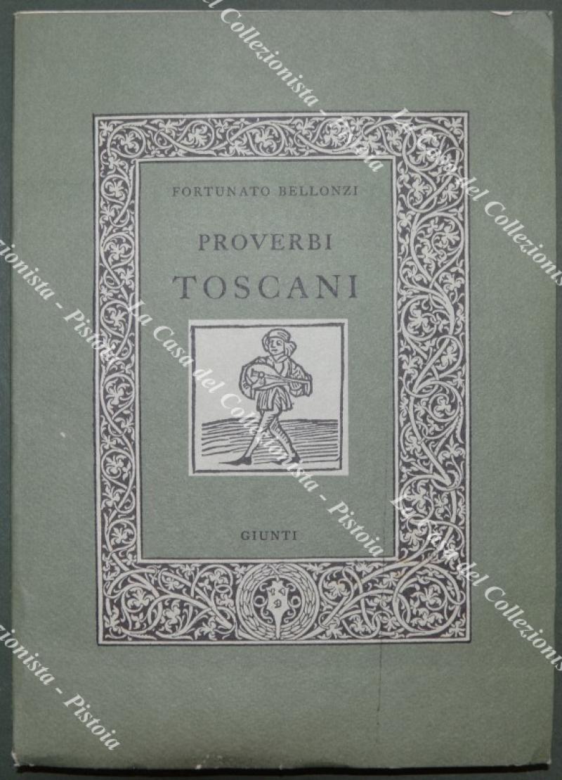 (Proverbi) BELLONZI FORTUNATO. PROVERBI TOSCANI. Firenze, Giunti, 1987. Cm 19x26, cartonatura editoriale illustrata, pp. XV + 184 con illustrazioni in nero nel testo e tavole fuori testo a colori che riproducono stampe di C. Lasinio. Ottima conservazione. (Rif.F7795-77)