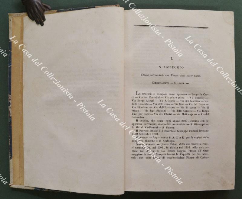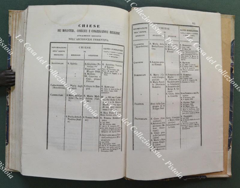 RACCOLTA DI NOTIZIE STORICHE RIGUARDANTI LE CHIESE DELL'ARCI-DIOCESI DI FIRENZE. Firenze, Tip. Mazzoni, 1847