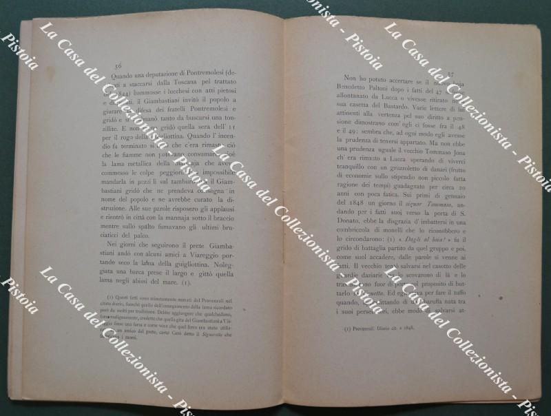 (Toscana - esecuzioni di morte) ESECUZIONI CAPITALI A LUCCA NEL SECOLO XIX. Studio di documenti e ricordi letto alla R. Accademia Lucchese il 22 maggio 1911.