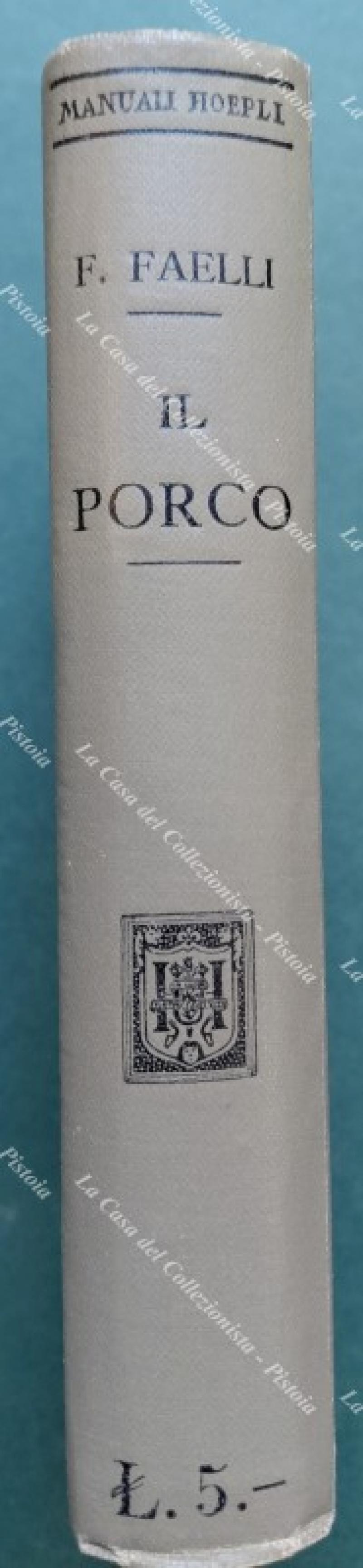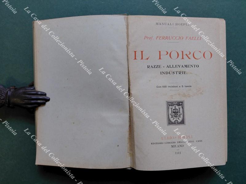 (Manuali Hoepli) FAELLI Ferruccio. IL PORCO. Razze - Allevamento - Industrie. Milano, Hoepli, 1911. Cm 10,5x15, legatura editoriale illustrata. Pp. XV + 459 con 100 incisioni nel testo e 5 tavole fuori testo. Pagina di guardia reintegrata con una simile, per il resto ottimo. (Rif.F7084)