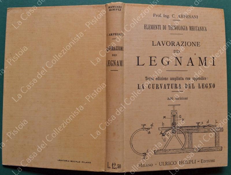 Manuale Hoepli. ARPESANI C.. LAVORAZIONE DEI LEGNAMI. Milano, Hoepli, 1917