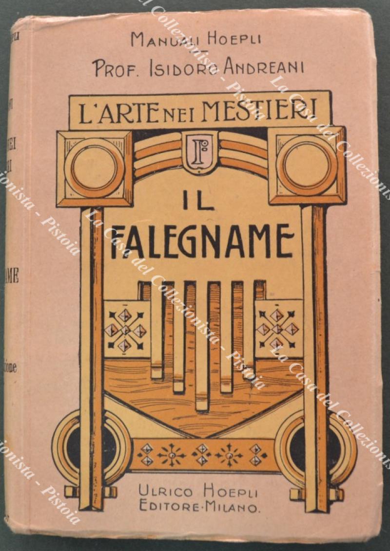 (Manuali Hoepli) ANDREANI ISIDORO. IL FALEGNAME. Terza edizione con 264 incisioni e 25 tavole. Milano, Hoepli, 1920. In 16° (cm 10,5x15,5), cartonatura editoriale illustrata, pp. XII + 297. Ottima conservazione. (Rif.F7873)