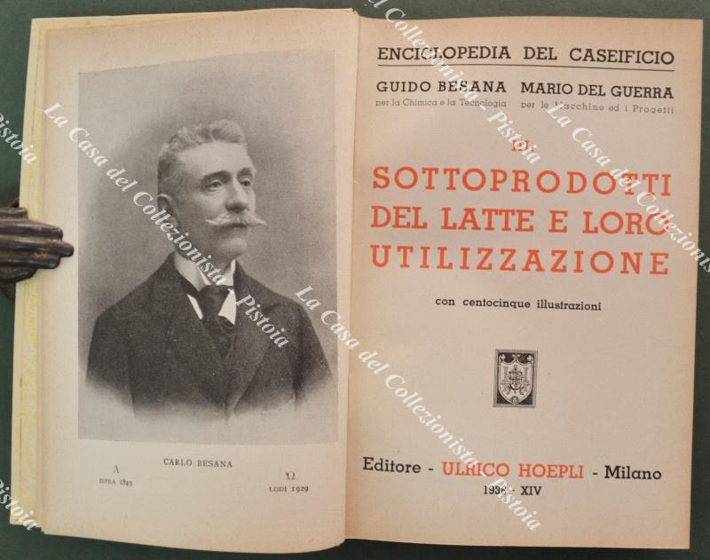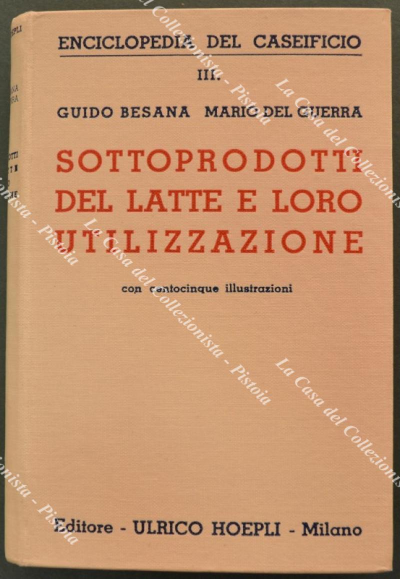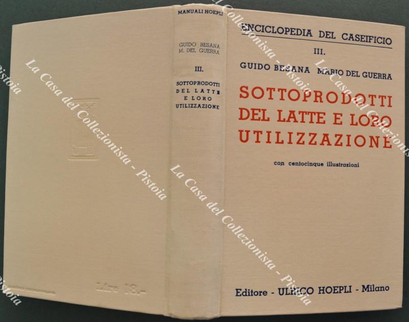 (Manuali Hoepli) BESANA G. - DEL GUERRA M.. SOTTOPRODOTTI DEL LATTE E LORO UTILIZZAZIONE. Milano, Hoepli, 1936. In 16° (cm 11x15,5), tela editoriale, pp. XX + 435 con 105 illustrazioni. Ottima conservazione. (Rif.F7876)