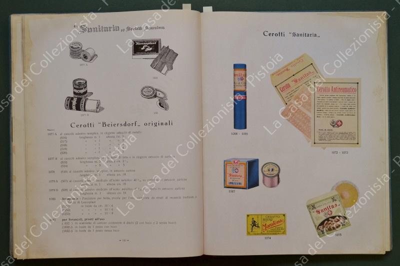 Pubblicità. CATLOGO GENERALE SANITARIA di Milano. Fabbrica di medicazione Asettica ed Antisettica: articoli in gamma per Farmacia, Chirurgia ed Ospedali, strumenti chirurgigi, ecc. Grosso volume del 1932, copertina in mezza tela con piatto anteriore illustrato formato cm 23x29, pagine 198 con circa 2700 illustrazioni. Il volume è solido, la copertina in ottimo stato: sono purtroppo presenti danni dovuti all'aderenza delle pagine in carta patinata che però interessano i margini senza ledere il testo e illustrazioni. (Rif.F5620)