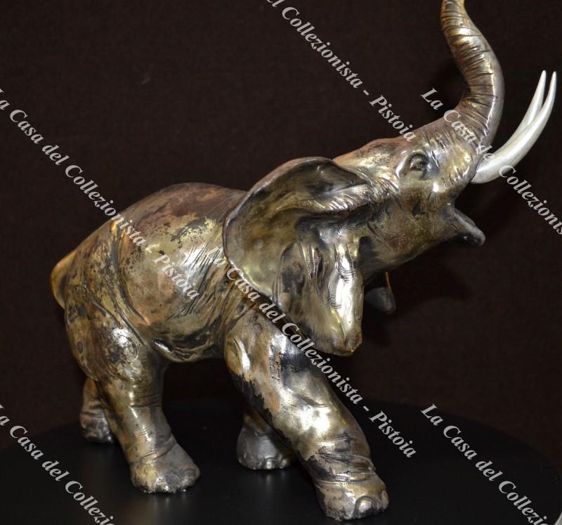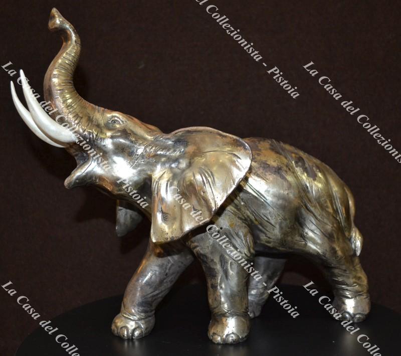 Elefante in terracotta argentata databile attorno al 1930. Ottima fattura e buono stato di conservazione con normali ossidazioni dell’argento dovute al tempo. Misura circa cm 33x27x18. (Rif.F7735)