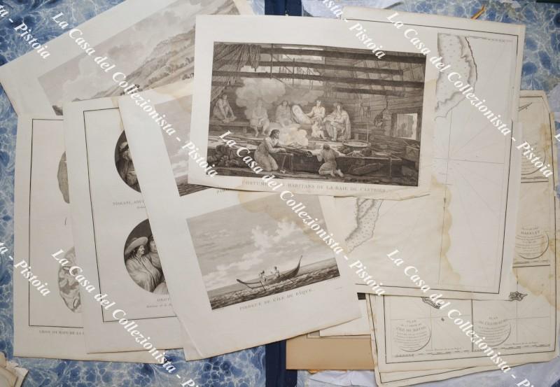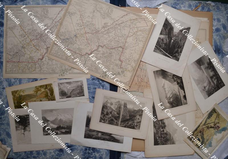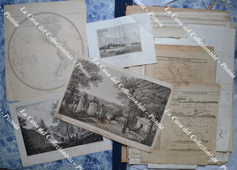 LOTTO DI CIRCA 110 INCISIONI (acquaforti, acciai, litografie, xilografie) provenienti da opere del '700/'800 (atlanti e libri di viaggio per lo più). 32 sono carte geografiche, 78 sono vedute e soggetti vari.