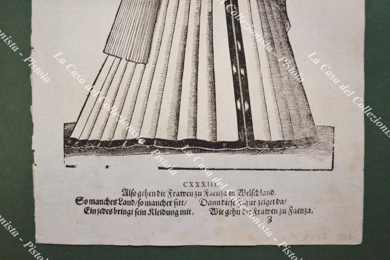 Anno 1577. HONESTA MULIER FAVENTINA in Italia (Donna di Faenza). Rara xilografia dall'opera di Hans Weigel.