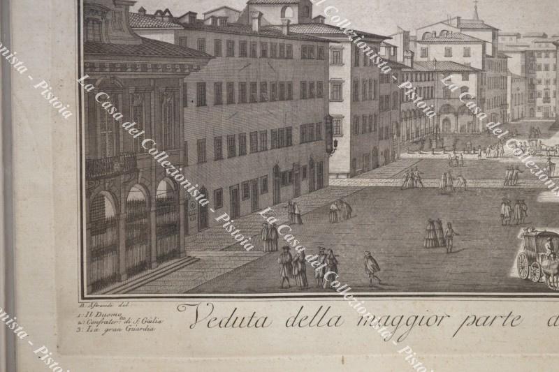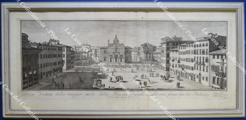 TOSCANA - LIVORNO. VEDUTA DELLA MAGGIOR PARTE DELLA PIAZZA GRANDE DI LIVORNO PRESA DAI TRE PALAZZI. Incisione su rame di mm 735x273 (ai margini mm 775x335). Tratta dalla serie di 18 incisioni “Collezione delle più belle vedute della Città porto di Livorno ....”, raro album stampato nel 1814 in Livorno. Agli estremi del margine inferiore Aliprandi del. Fambrini sculp.. Buona conservazione.(Rif.F6580-288/76)