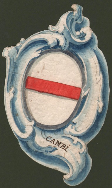 CAMBI di REGGIO. Splendido acquarello settecentesco raffigurante lo stemma della famiglia.