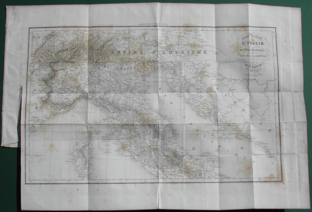 ITALIA. Carte routiere de lItalie et dune Partie des etats limitrophes. La carta comprende la penisola fino all'altezza del Gargano e la Dalmazia fino a Cattaro. Più volte ripiegata misura mm 470x290 più margini. Tratta dall'opera "Italie Pittoresque" edita a Parigi nel 1836. (Rif.A1010-142/51- Italia)