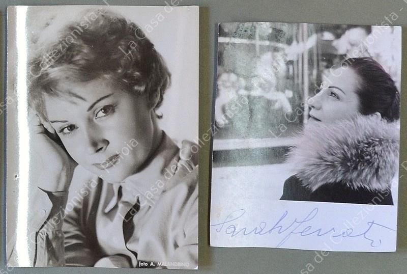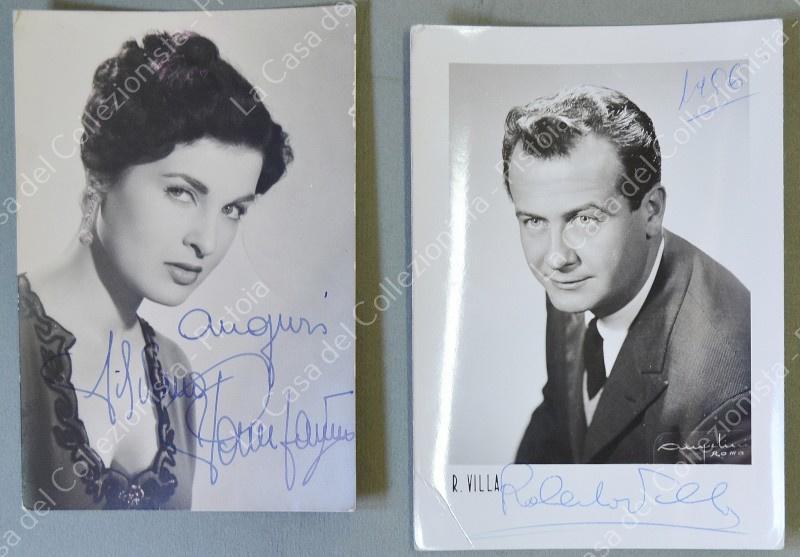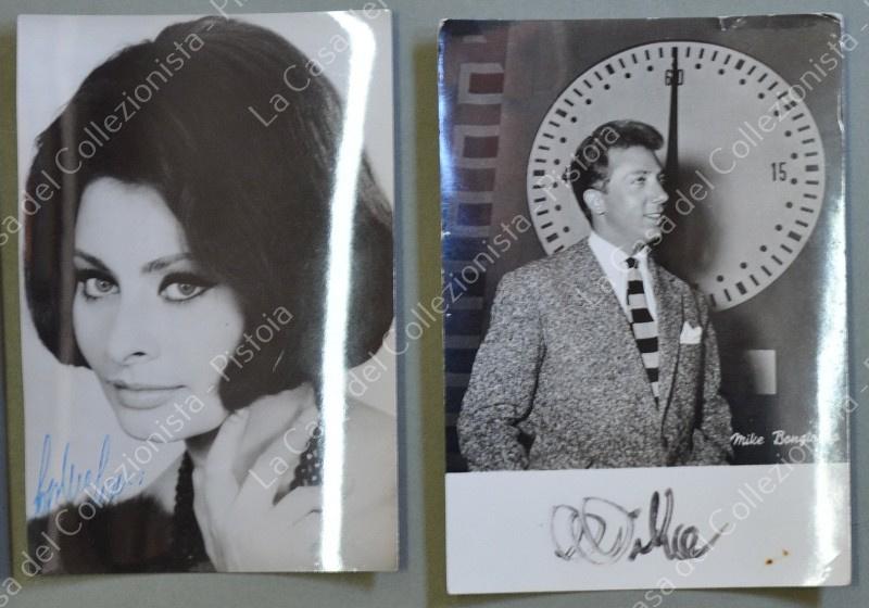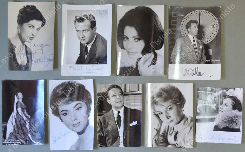 AUTOGRAFI. 9 cartoline fotografiche anni 1950 con autografi di personaggi italiani dello spettacolo: Silvana Pampanini, Roberto Villa, Sofia Loren, Margherita Roberti, Silva Koscina (un poco rifilata), Sarah Ferrati (rifilata), Valentina Fortunato (un poco rifilata), Carlo d'Angelo (un poco rifilata), Mike Bongiorno. (Rif.F6096)