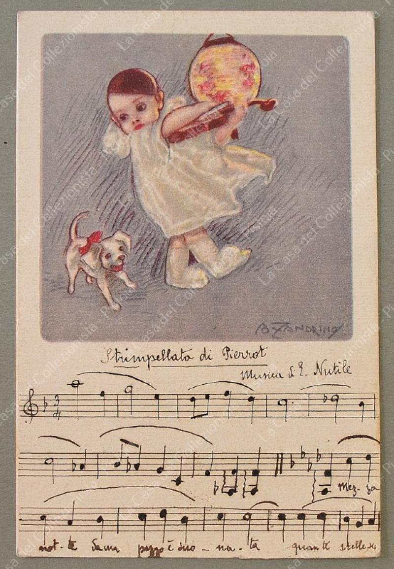NUTILE EMANUELE (Napoli 1862 - Napoli 1932) compositore italiano, noto soprattutto per le sue canzoni napoletane. STRIMPELLATA DI PIERROT. Musica di E. Nutile. Cartolina illustrata anni '20 con manoscritte parole e musica sui due lati. Ottima conservazione. (Rif.F6414)