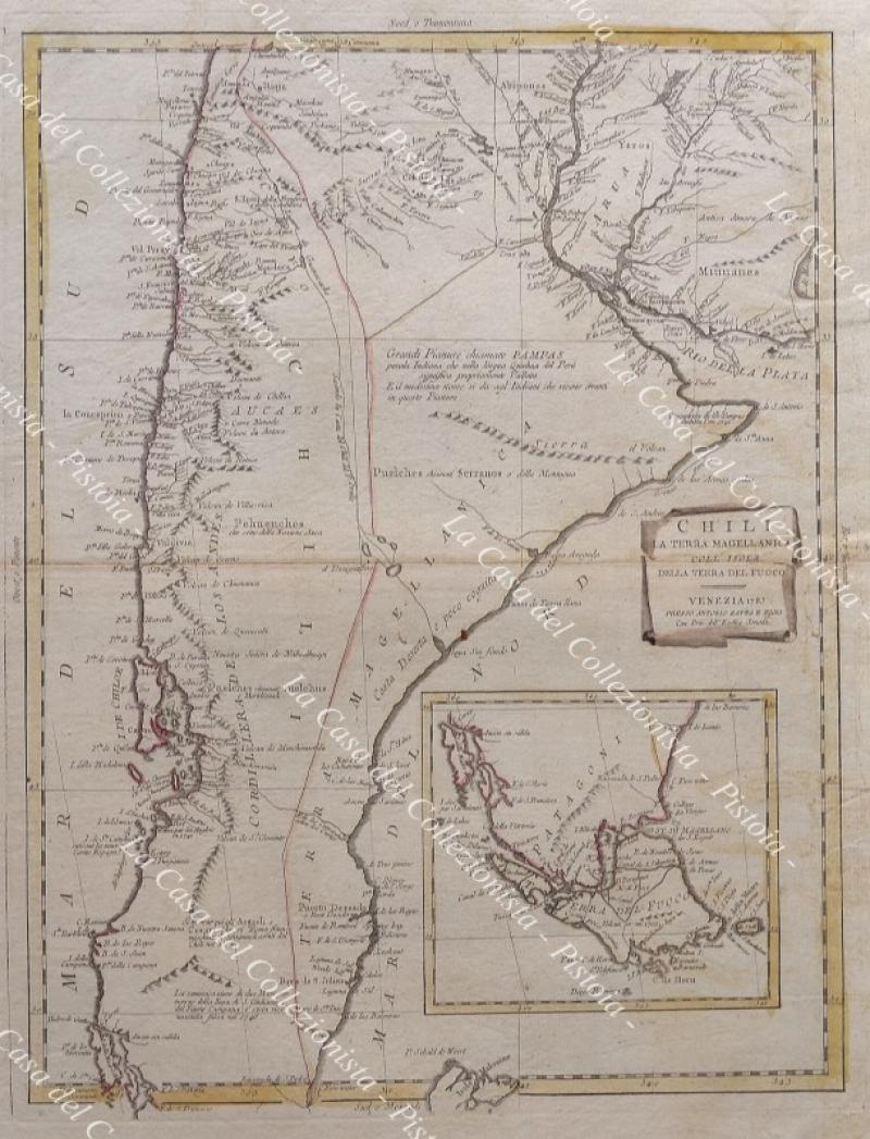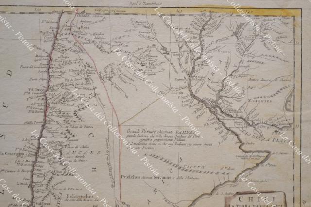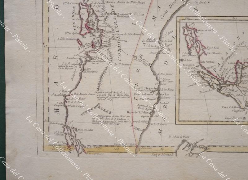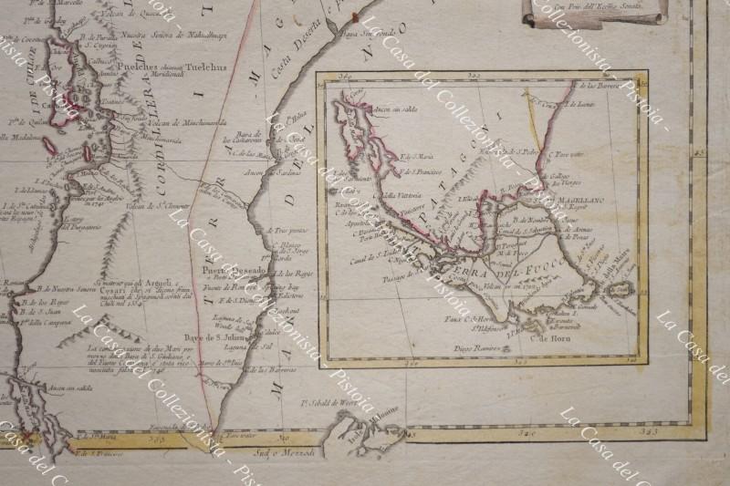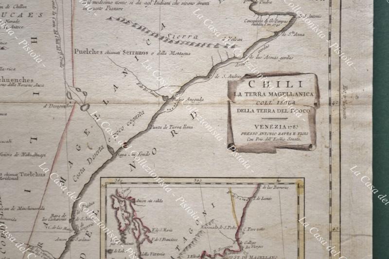 AMERICA MERIDIONALE. Carta geografica originale. "CHILI LA TERRA MAGELLANICA COLL' ISOLA DELLA TERRA DEL FUOCO". Venezia, Antonio Zatta 1785.