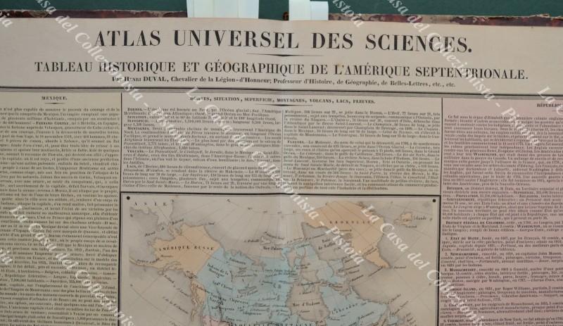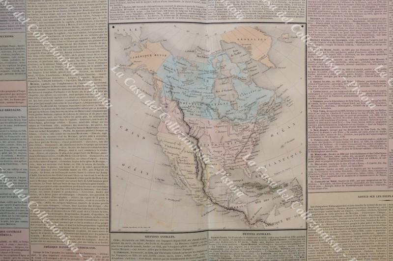 America settentrionale. TABLEAU HISTORIQUE ET GEOGRAPHIQUE DE L'AMERIQUE SETTENTRIONALE. Grande carta acquarellata all'epoca di cm 58x40,5 ai margini. Tratta da ATLAS UNIVERSEL DES SCIENCES PAR HENRI DUVALE stampato nel 1839 a Parigi dalla tipografia Terzuolo. Buona conservazione. (Rif.F4044)
