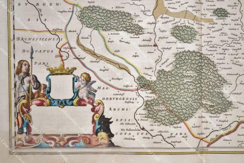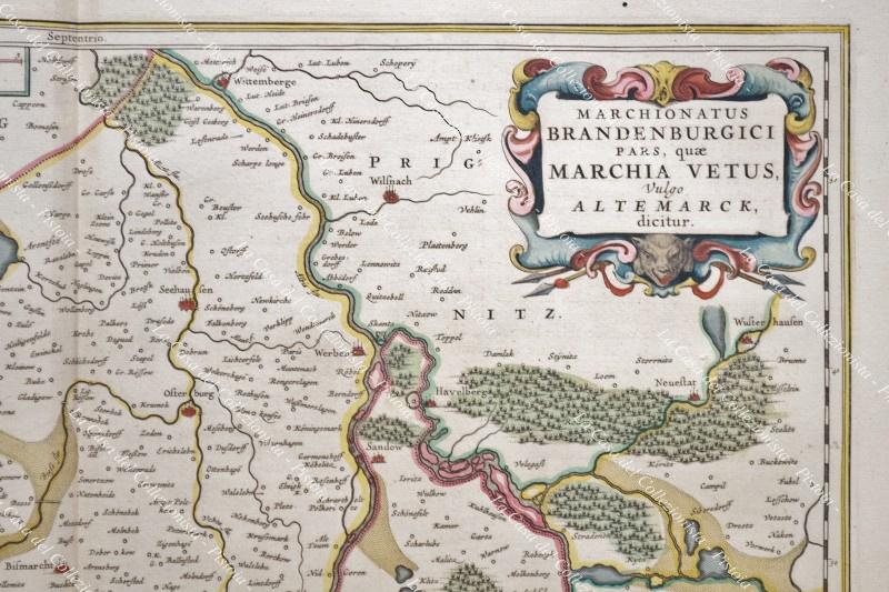 Anno 1662. Germania Germany Deutschland. MARCHIONATUS BRANDEBURGICI PARS QUAE MARCHIA VETUS VULGO ALTEMARCK DICITUM. Carta geografica tratta da ATLAS MAYOR, Giovanni Blaeu, Amsterdam 1662. Coloritura dell'epoca. Mm 400x505 (ai margini mm 500x650). Aloni e piccoli difetti sul margine inferiore. (Rif.D6322)