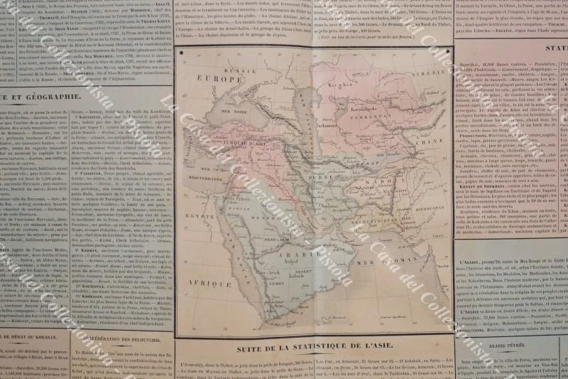 Asia. TABLEAU HISTORIQUE ET GEOGRAPHIQUE DE L'ASIE, PERSE, TARTARIE, ARABIE. Grande carta acquarellata all'epoca, anno 1839.
