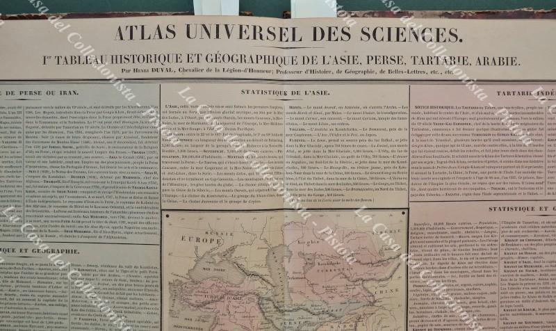 Asia. TABLEAU HISTORIQUE ET GEOGRAPHIQUE DE L'ASIE, PERSE, TARTARIE, ARABIE. Grande carta acquarellata all'epoca di cm 58x40,5 ai margini. Tratta da ATLAS UNIVERSEL DES SCIENCES PAR HENRI DUVALE stampato nel 1839 a Parigi dalla tipografia Terzuolo. Buona conservazione eccetto minima apertura alla base della piega centrale editoriale. (Rif.F4041)