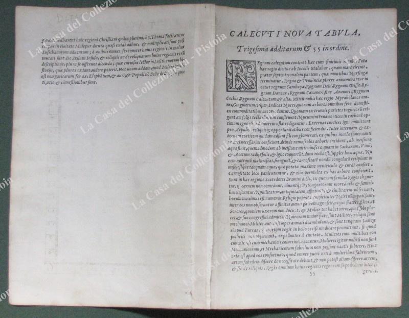 INDIA. “CALECUT NUOVA TAVOLA”. Mostra l’intera penisola indiana con le isole Maldive e parte dello Sri Lanka. Carta geografica del mondo moderno di Ruscelli, tratta dall’opera “GEOGRAPHIA CL. TOLEMAEI ALEXANDRINI” stampata a Venezia da Vincenzo Valgrisi nel 1562. Carta di mm 285x220 ai margini. Ottima conservazioni. (Rif.D6794 - 201/70)