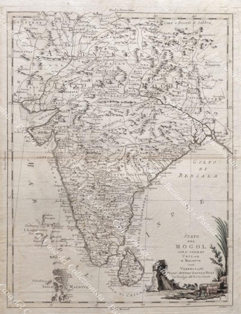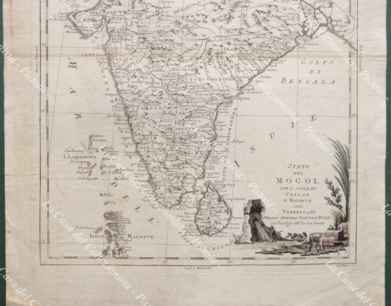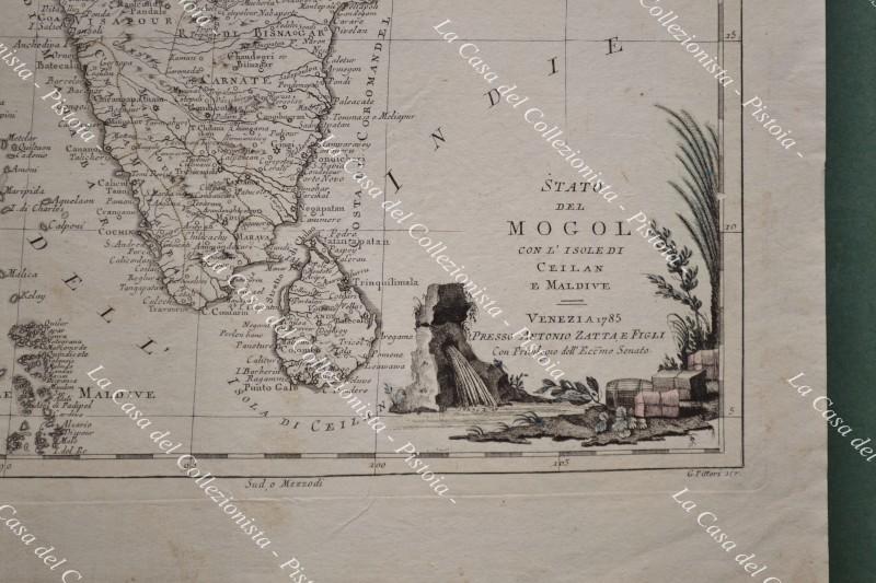 INDIA. Carta geografica originale. "STATO DEL MOGOL CON L'ISOLE DI CEILAN E MALDIVE". Venezia, Antonio Zatta 1785.