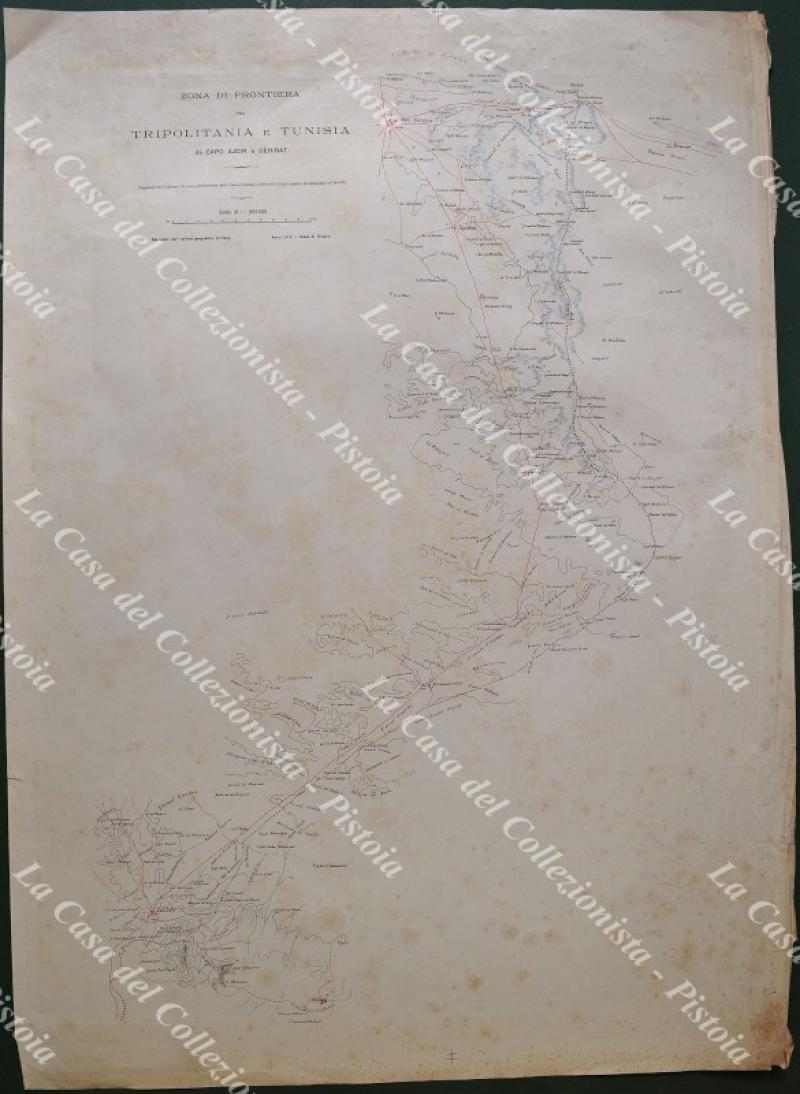 LIBIA. "ZONA DI FRONTIERA FRA TRIPOLITANIA E TUNISIA. Da capo Ajdia a Dehibat". Grande carta stampato nel 1912