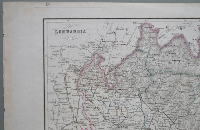LOMBARDIA. Carta geografica tratta dall'atlante di F. Pagnoni (circa 1865) di mm 405x325 più margini. Confini acquarellati. Unita altra tavola a carattere descrittivo. (Rif.A1931-430/40)