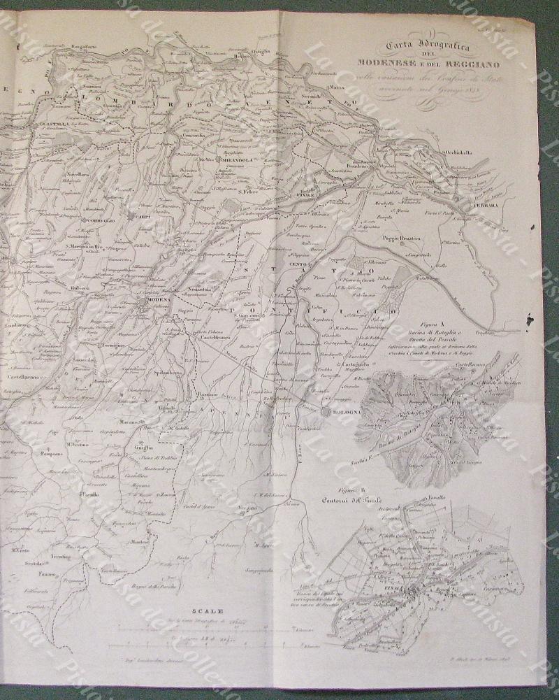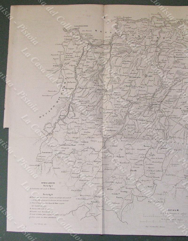 EMILIA. “CARTA IDROGRAFICA DEL MODENESE E DEL REGGIANO... Gennaio 1848”. Carta tratta dall'opera dell’Ing. Elia Lambardini